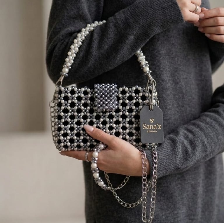 Sana'z Studio’s pearl bags are a masterpiece—each stitch tells a story of dedication and artistry.